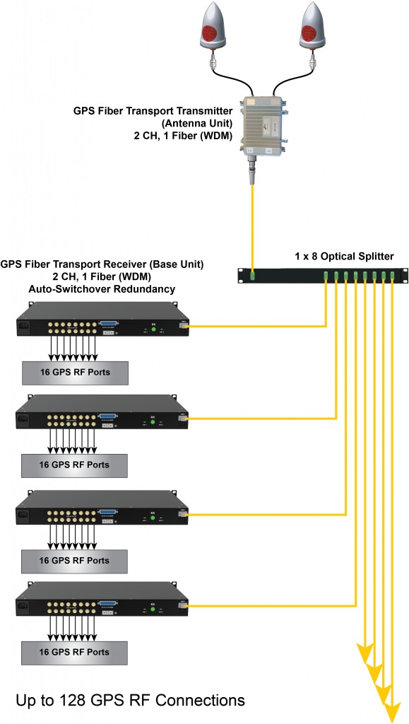 Les systèmes GPS se composent généralement d’une antenne de toit active, d’un récepteur GPS et d’une longueur de câble coaxial pour les connecter. Un défi se pose, cependant, lorsque la distance entre l’antenne sur le toit et l’équipement de la station de base cellulaire (généralement au sous-sol) est supérieure à 300 pieds. Les câbles coaxiaux de plus de 300 pieds ne sont pas pratiques pour la plupart des systèmes de récepteurs GPS, donc une fibre une liaison optique est nécessaire à ces distances ou à des distances supérieures, et les liaisons à fibre optique d’Optical Zonu comptent parmi les liaisons les plus fiables et les plus rentables de l’industrie.