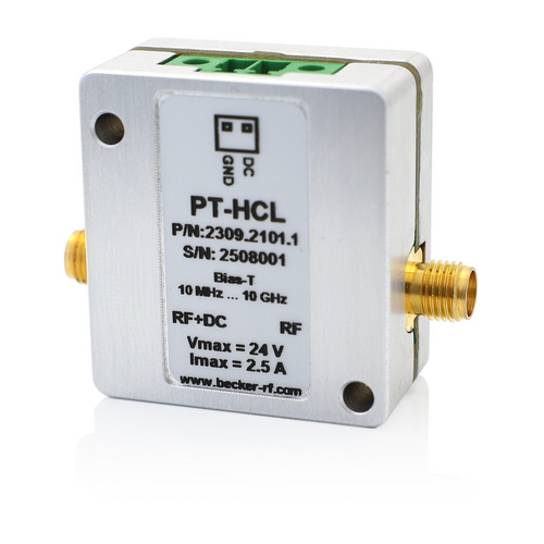 Le PT-HCL est un module BIAS-T à courant élevé offrant une plage de fréquences extrêmement large. Grâce à sa capacité de courant extrêmement élevée, ce module permet de tester des périphériques très gourmands en énergie, tels que les caméras vidéo.